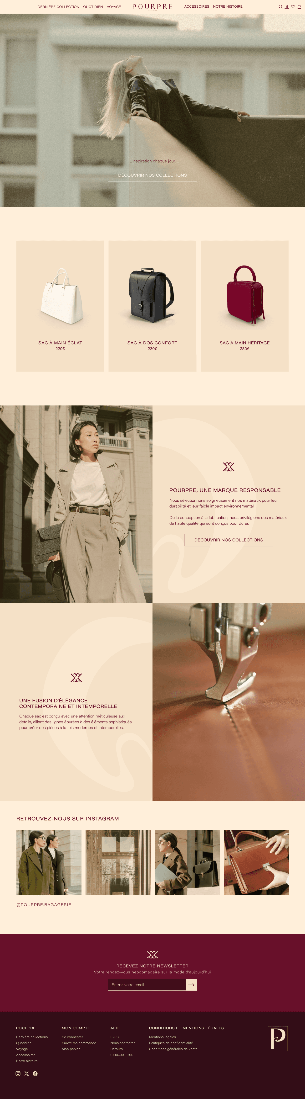 Pourpre, c'est la marque de maroquinerie crée par des créatrices qui dénichent des matières premières à proximité de la France et jouent la carte de la transparence sur leurs actions et processus de création. Pour l'univers de la marque, il fallait utiliser le pourpre et ses nuances.