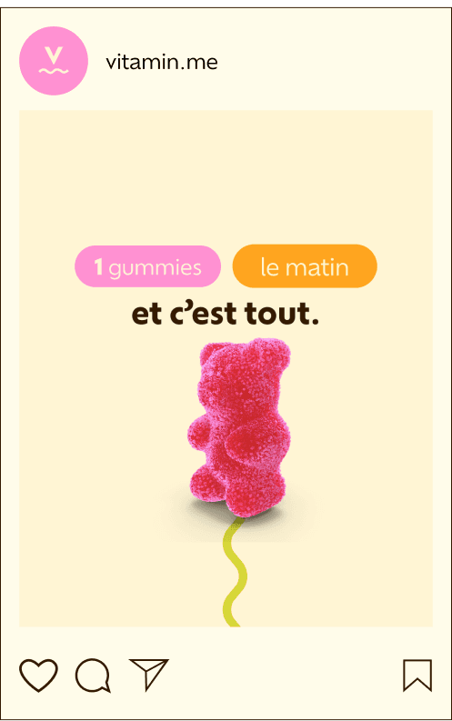 Egalement, l’idée est de montrer à la clientèle que prendre ces gummies fruités n'est pas une contrainte au quotidien, mais un petit plaisir gourmand.